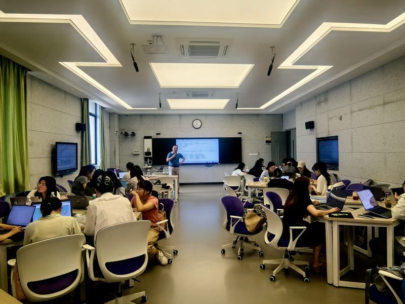 本网讯 外国语学院于7月8日至13日举办“基于R语言的语言数据分析暨外语教学与研究中的量化研究方法研修班”和“基于Python的语言数据分析暑期研修班(第二期)”,共有来自省内外高校的50余名师生参与,系统学习基于人工智能的数据分析技术在语言教学与研究中的应用。